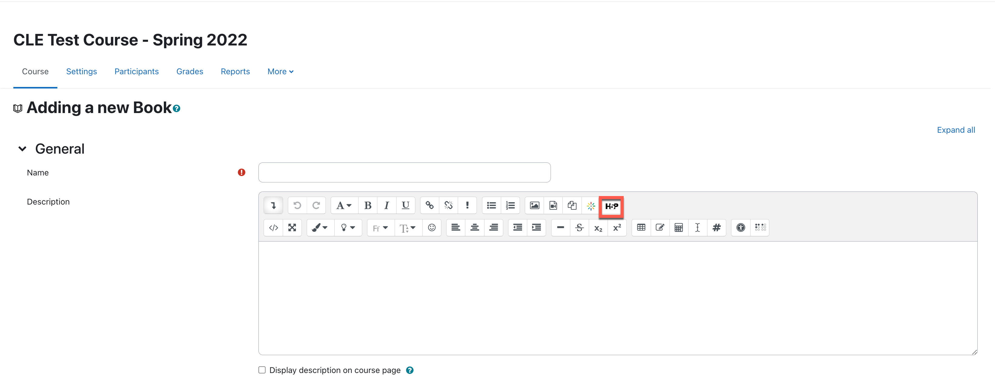- In the CLE course, click the turn Edit mode on, then add an activity/resource that contains a Text Editor such as Page, Lesson, Book, or Text or media area (Label).