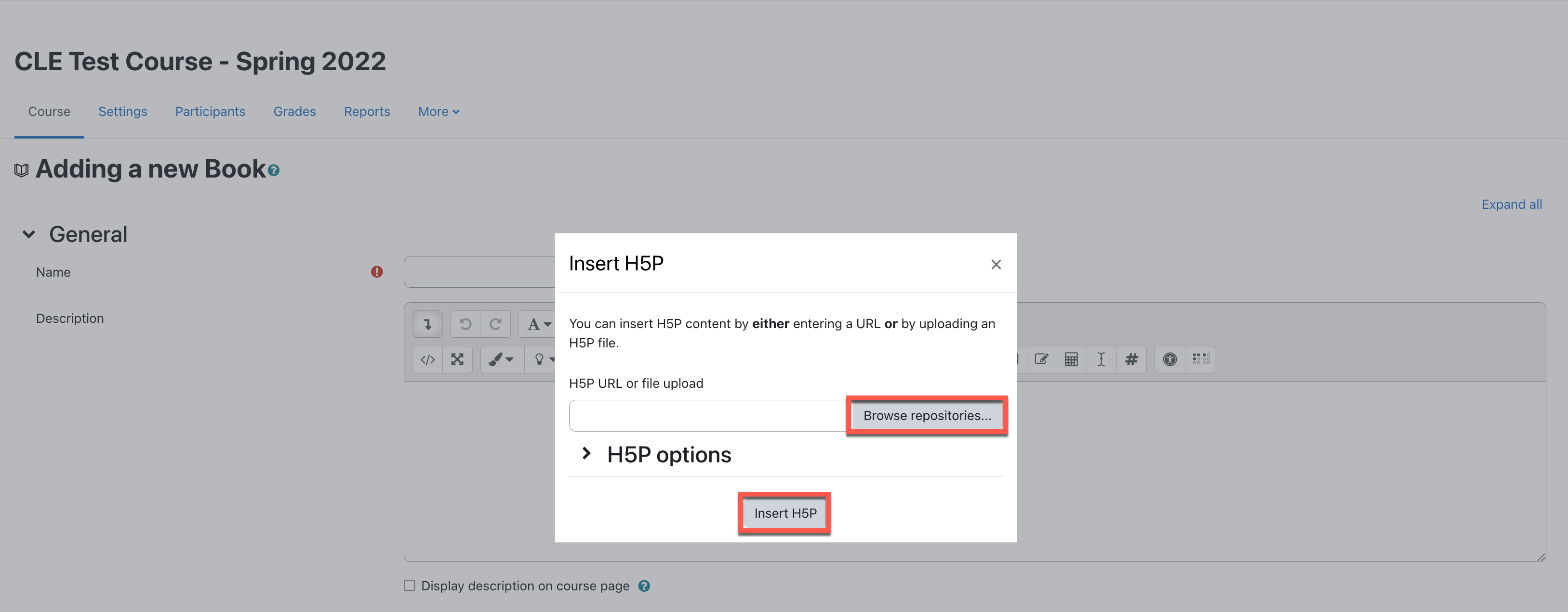 - Click Insert H5P.
