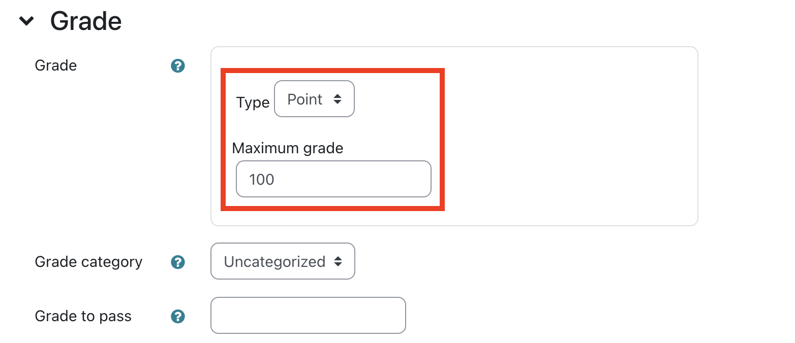 - If graded assignment, expand "Grade" and choose grade type from the dropdown.