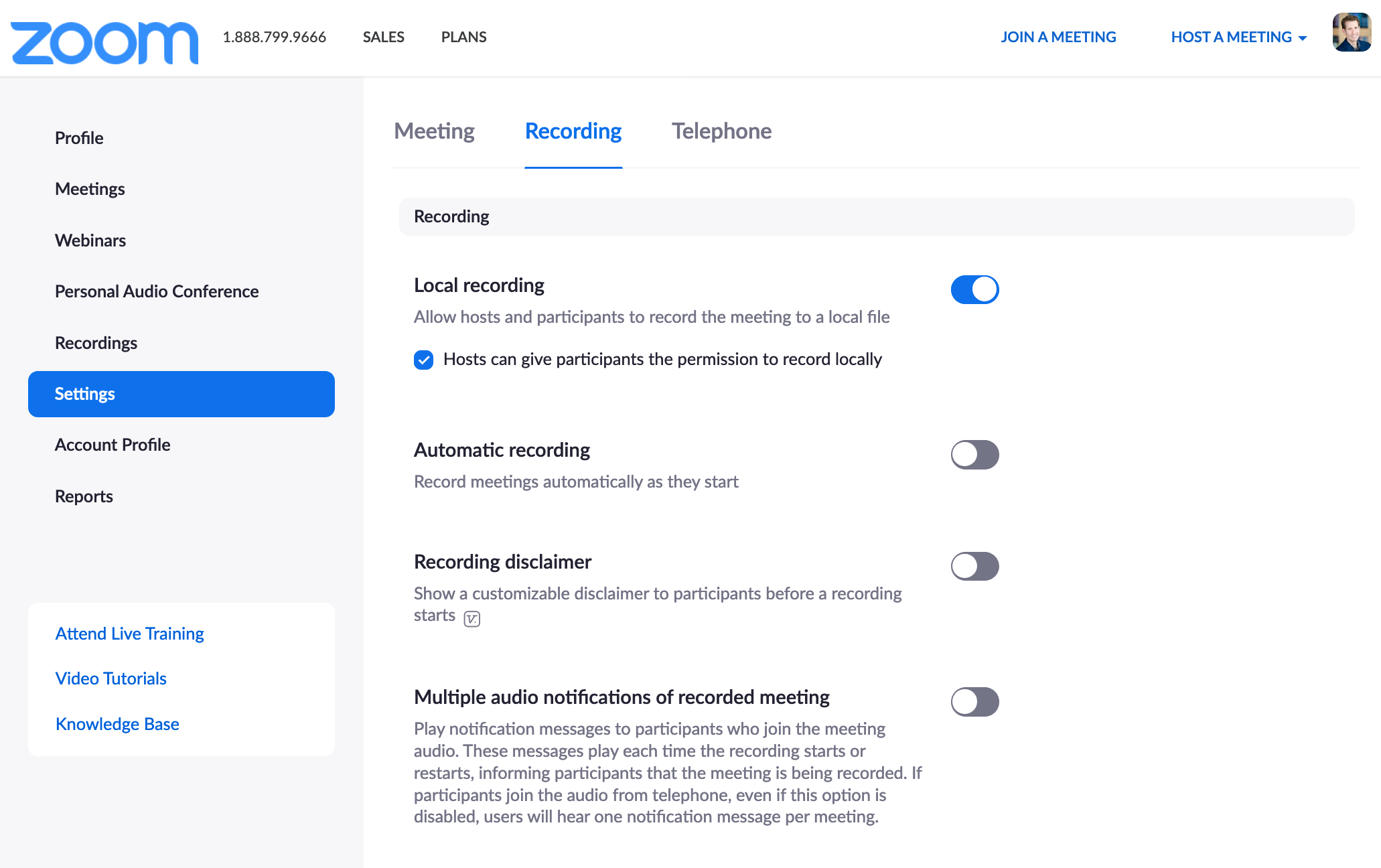 Make note of the "Store my recordings at" option. This is where your completed recordings will be stored by Zoom.