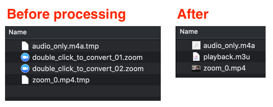 Before the recordings can be shared, they must go through a conversion process. This happens automatically, but if you interrupt processing (i.e. turn your computer off), you can open the folder and double-click the .zoom files to restart the processing step.